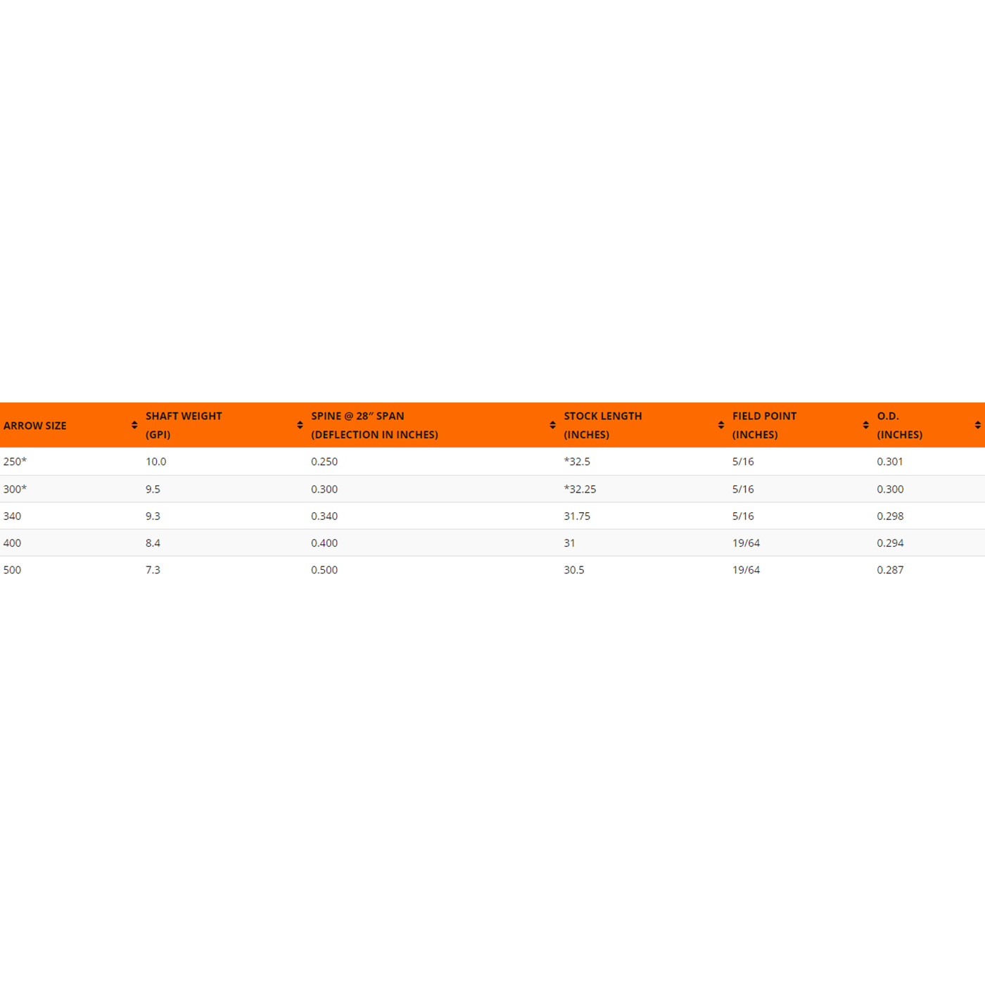 - Note: Shafts only; not arrows.